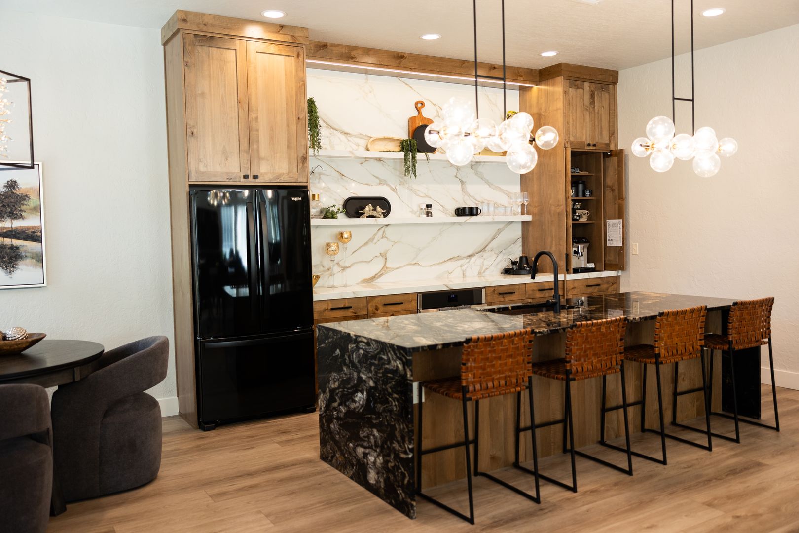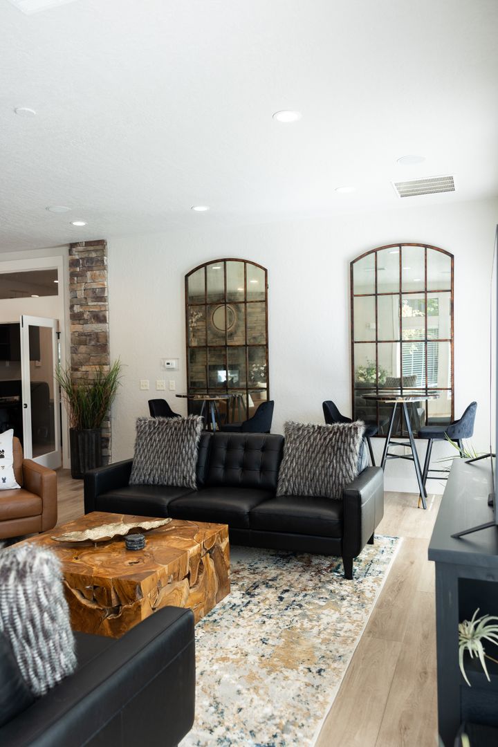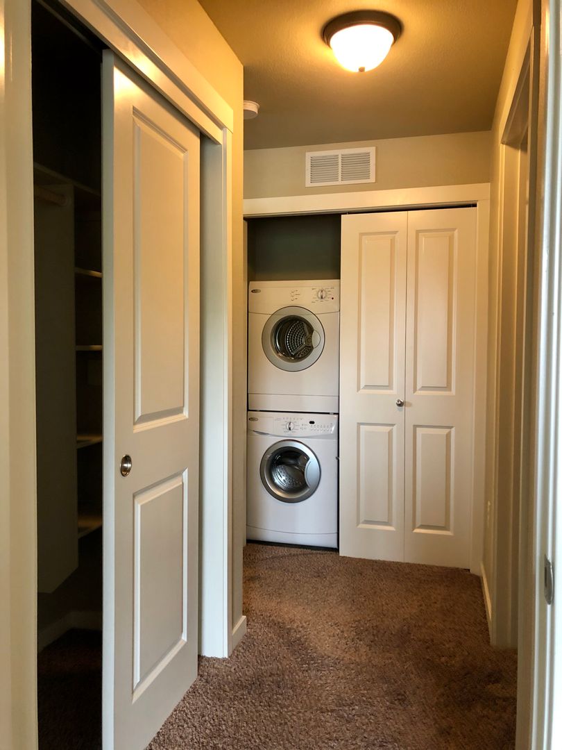 You will find that all our apartment homes include one of our 3 custom interior packages. Our custom interiors include upgraded GRANITE rough edge countertops, stainless steel in-set sink, retractable kitchen faucet, custom cabinetry, carpet with 8lb pad, warm interior paint, large windows with natural light, black on black appliances with flattop cook range, icemaker, front Loading washer and dryer, private patio or balcony with storage, and an abundance of closet space.